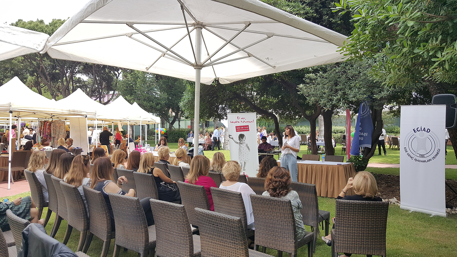 EGİAD Bizim Çocuklarımız Projesi kapsamında düzenlenen 2.Tasarımcı Buluşması ve Kermes’i Swissôtel Büyük Efes Bahçesinde gerçekleştirildi. Çok sayıda farklı tasarımcının stantlarıyla yer aldığı etkinlik tüm gün sürdü. Düzenlenen Kermesten elde edilen tüm gelir Koruncuk Vakfı’nın Urla’da inşa edeceği Urla Çocuk Köyü’ne bağışlandı.