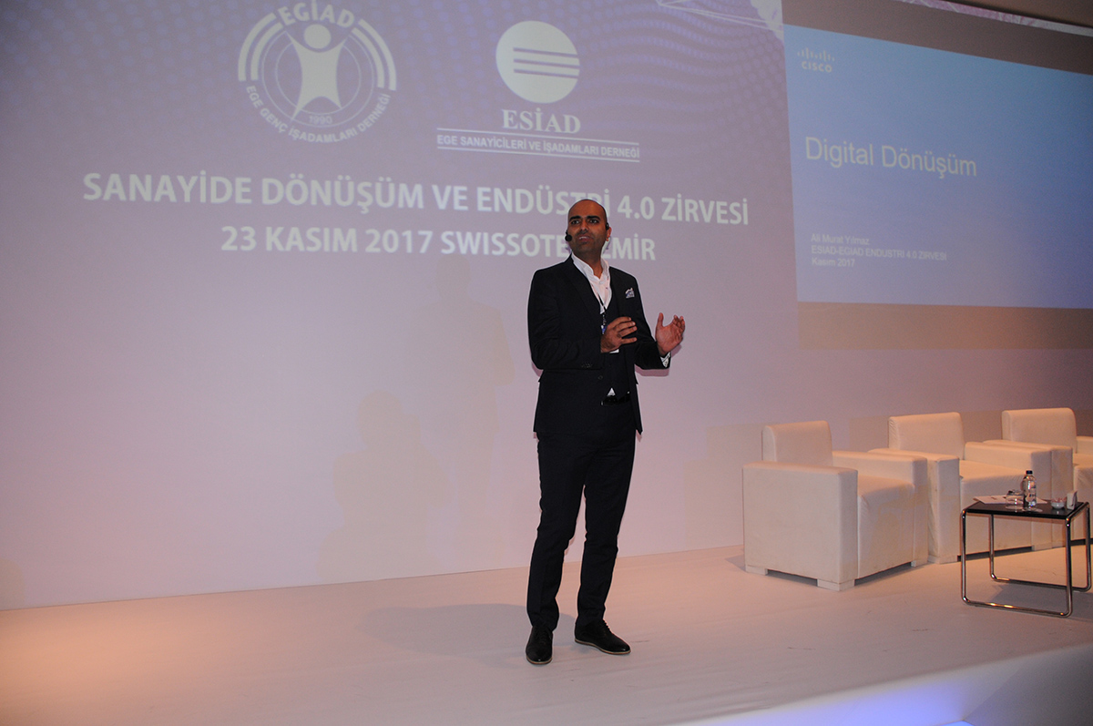 Ege Genç İşadamları Derneği (EGİAD) ve Ege Sanayicileri ve İşadamları Derneği (ESİAD) işbirliği ile 23 Kasım 2017 Perşembe günü Swissotel Büyük Efes’te “Biz Başlıyoruz” temasıyla “Sanayide Dönüşüm ve Endüstri 4.0 Zirvesi” düzenlendi. Organizasyona alanında lider şirketlerin üst düzey yöneticileri katıldı. Zirve’de Türkiye’nin, Yeni Sanayi Devrimi’ni kaçırmaması gerektiği, 16 yeni mesleğin 2020 yılında devreye gireceği ve yakın gelecekte 40 milyar nesnenin internete bağlı olacağı vurgulandı.