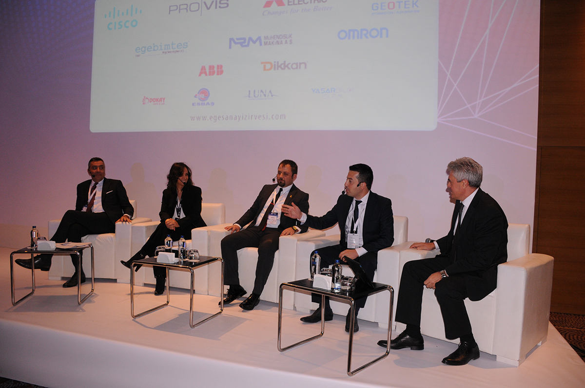 Zirve EGİAD Başkanı Aydın Buğra İlter, ESİAD Başkanı Fadıl Sivri, EBSO Yönetim Kurulu Başkan Yardımcısı Erdoğan Çiçekçi’nin açılış konuşmalarıyla başladı. Ardından, 5 ana başlık altında konuşmalar gerçekleştirildi. Bu kapsamda, “Endüstri 4.0 ve İlham Verenler” bölümünde ION Academy Kurucusu Ali Rıza Ersoy, Yaşar Holding Bilgi Sistemleri Başkan Yardımcısı Sinan Gerçek söz aldı. Yaşar Üniversitesi Araştırma, Geliştirme ve Uygulama Merkezi Koordinatörü Selçuk Karaata Moderatörlüğündeki “Biz nasıl başladık” panelinde ise; Hugo Boss Bilgi Teknolojileri Grup Yöneticisi Erkut Ekinci, Dr Oetker Bakım ve Proje Yöneticisi Burak Gürhan, Vestel Elektronik Kart Üretim Müdürü Özgür Eriş, thyssenkrupp Türkiye Bölge Direktörü Can Yapan konuşma yaptı. Programın öğleden sonraki kısmında ise, “Nasıl yapılıyor, Nasıl devam edeceğiz, Dünyadan Örnekler” başlığı altında; BOSCH IoT & Endüstri 4.0 Koordinatörü Mustafa Ayhan, Cisco Ege Bölge Yöneticisi Ali Murat Yılmaz, Mitsubishi Electric Türkiye Fabrika Otomasyon Sistemleri OEM İş Geliştirme Kıdemli Müdürü Tolga Bizel yaptığı çalışmalara yer verdi. Ege Üniversitesi İşletme Bölümü Yönetim Bilişim Sistemleri Ana Bilim Dalı Başkanı Prof. Dr. Haluk Soyuer’in Moderatör olduğu “Nasıl Yardımcı Olabiliriz” tedarikçi panelinde de KUKA Ülke Müdürü Kağan Abidin, ABB Elektrik San. A.Ş. Robot Bölümü Genel Müdürü Emre Tural, OMRON Industrial Automation Pazarlama Müdürü Nurcan Konak, Güler Dinamik Yönetim Kurulu Başkanı Kenan Güler söz aldı. Programın kapanış konuşması da “Ve Gelecek” başlığı ile Gazeteci, Televizyoncu, Ekonomi Yorumcusu Emin Çapa’dan geldi. Gün boyunca gerçekleşen organizasyonda katılımcı şirketler, somut iyi uygulama örneklerini aktarırken, Frozen Frost firmasının kurucu ortakları Mustafa Çelikkaya ve Eray Özer’in Sanal Gerçeklik Sunumu ve canlı robot demonstrasyonları dikkat çekti.