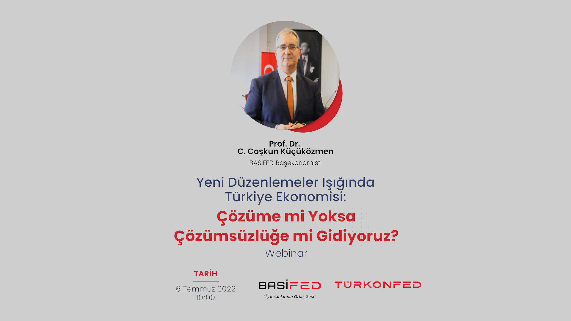 Değerli Üyemiz,BASİFED tarafından, BASİFED Başekonomisti Prof. Dr. C. Coşkun Küçüközmen’in katılımlarıyla, 6 Temmuz 2022 Çarşamba günü, saat 10.00’da, “Yeni Düzenlemeler Işığında Türkiye Ekonomisi: Çözüme mi Yoksa Çözümsüzlüğe mi Gidiyoruz?” başlıklı bir webinar düzenlenecektir.Katılım Linki: https://us06web.zoom.us/j/81087841391?pwd=MUs5eDQvN1d2SzAzRFdTditHcWFjZz09Toplantı Kimliği: 810 8784 1391Parola: 397705Youtube: https://www.youtube.com/watch?v=dlFE_eqSExQ
